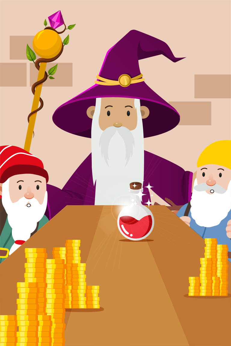 Zonder nog verder na te denken renden de dwergen naar hun spaarpotten. Even later kwamen ze terug met een zak vol goudstukken – al hun goudstukken – en kochten ze het flesje.