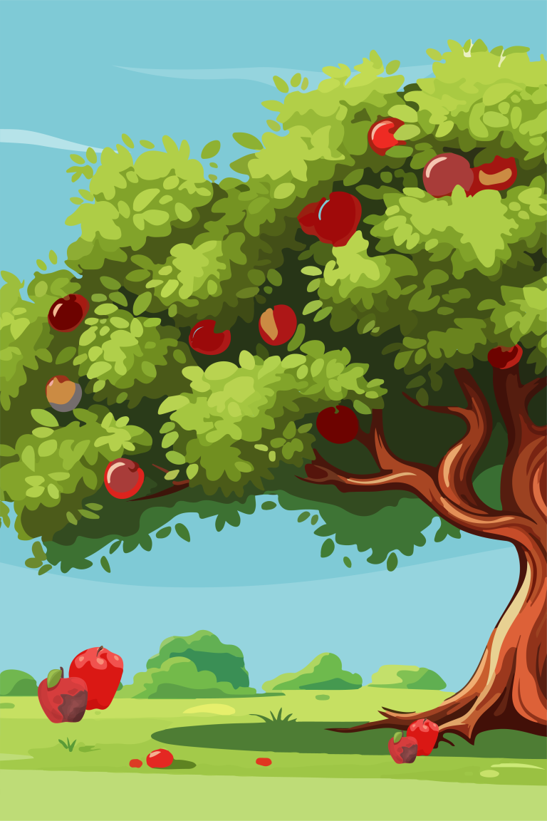 Samen begonnen ze opnieuw. Ze verwijderden de zieke bomen. Ze plantten appelboompjes zonder magie. Ze brachten compost naar de grond. Ze maakten plek voor bloemen zodat de bijen terug konden komen. Langzaam keerde het leven terug. De grond werd weer zacht en groen. De bijen zoemden weer tussen de bloemen. En de appels begonnen opnieuw te groeien, langzaam, maar sterk tot her grote rode appels hingen. Toen de herfst weer kwam, bakte Sneeuwwitje opnieuw haar appeltaarten. Net als vroeger. Toen de eerste taart uit de oven kwam, proefde een eekhoorn voorzichtig een stukje. Zijn ogen werden groot. “Perfect.”